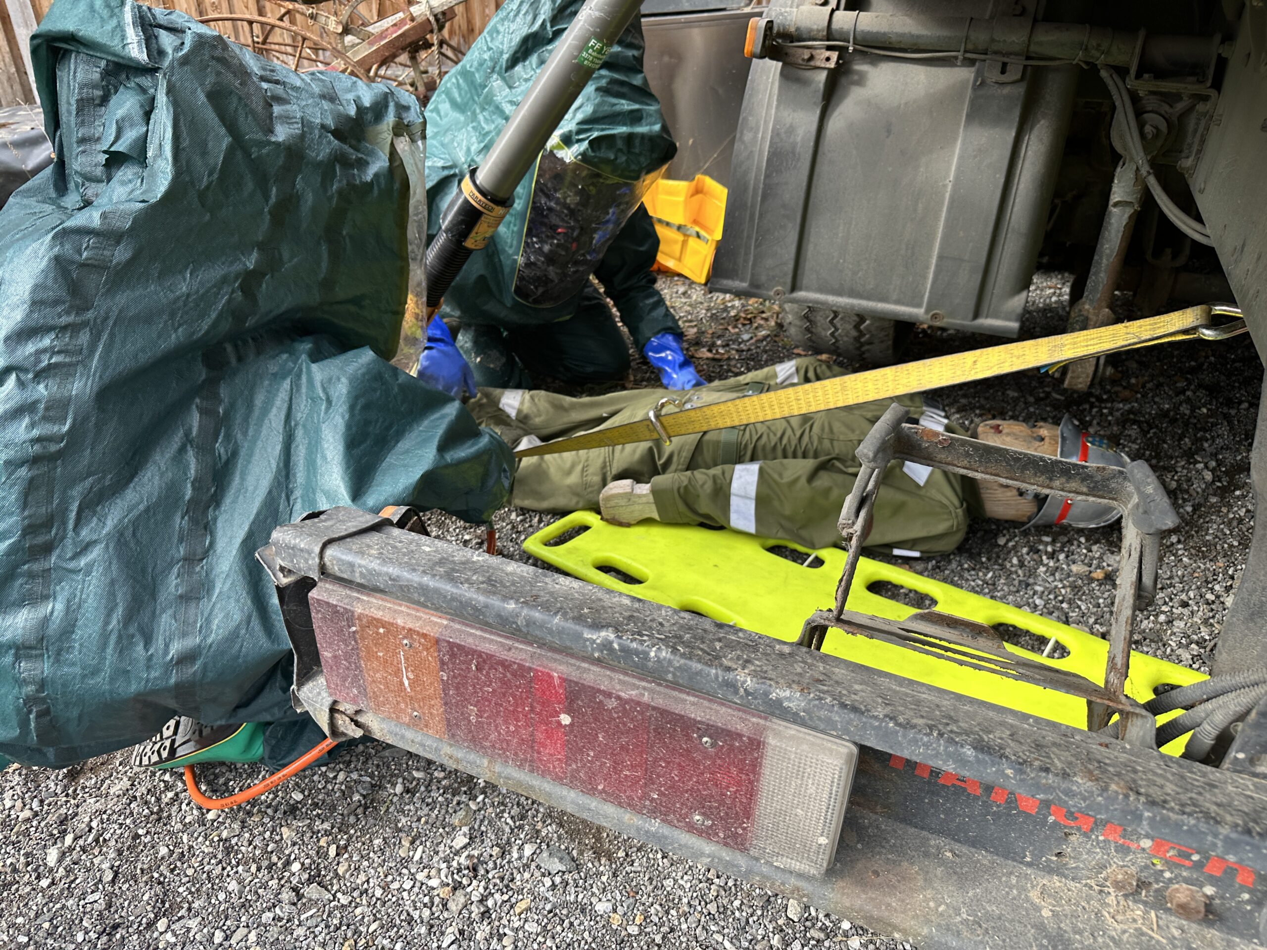 - Die Mannschaft des Tankfahrzeuges arbeitete zusammen mit der Feuerwehr Ybbs an einer Menschenrettung im Bereich einer Schadstoff-Einsatzstelle. Übungsannahme war, dass ein LKW, beladen mit einem Schadstoffcontainer, gegen eine Hausmauer prallte und dabei der Lenker sowie eine weitere Person unter dem Fahrzeug eingeklemmt wurden. Die Rettung der verletzten Person unter dem LKW erfolgte unter Schutzstufe-2-Anzügen, um die Einsatzkräfte vor einer potenziellen Gefährdung zu schützen.